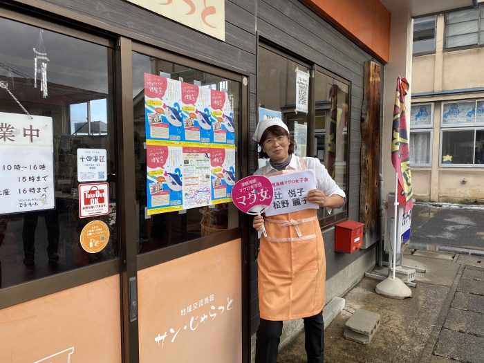 マグ女が選んだ津軽の地酒と自慢のお手製おつまみをご用意しました。特製のマグ女グラスで3種類を味わっていただきます。グラスは一杯70ml入り。熱燗のリクエストにもお答えします。ストーブ列車の運行時間により混みあいますので、予約席もご用意します。