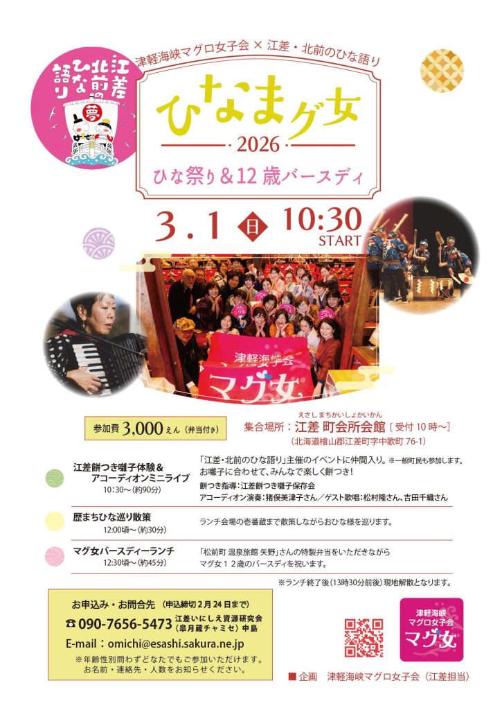 マグ女が誕生したのは、2014年3月4日、北海道江差町でのひな祭りイベントでのこと。みんなでわいわい笑い合いながら、その誕生の時の志を確かめ合うため、江差に集まるのが恒例になりました。