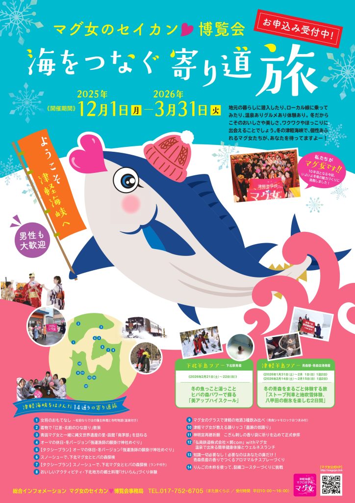 本州と北海道を、海でひとつにつなぐ津軽海峡。そのあちらこちらに、マグ女が生息しています。地元の暮らしに潜入したり、ローカル線に乗ってみたり、温泉ありグルメあり体験あり。地元愛あふれるマグ女ならではの「寄り道」旅をご用意しました!